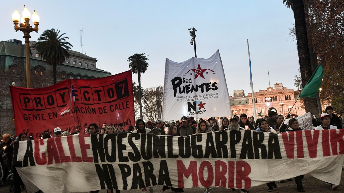 “Es el sexto frazadazo que se hace para visibilizar que en invierno también están las personas en situación de calle y que no alcanzan los espacios nocturnos. Las organizaciones populares acompañamos esta situación constantemente, todos los días, y sabemos que no es solamente una cuestión de techo, sino que no podemos pensar la situación sin tierra, techo y trabajo”, expresó a Télam la integrante de Red Puentes, Mariam López Dualde.