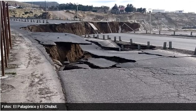 Se desmoronó la ruta 3 en el acceso a Comodoro Rivadavia
