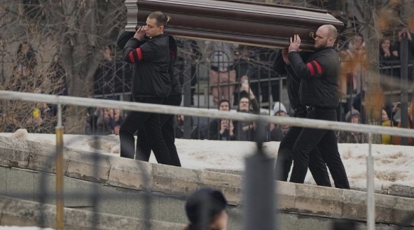 MOSCÚ, 1 MARZO (Reuters).- Los rusos corearon el nombre del político opositor Alexei Navalny el viernes mientras su ataúd era llevado a una iglesia de Moscú rodeada por la policía para un funeral al que sólo se permitió asistir a unas pocas personas.