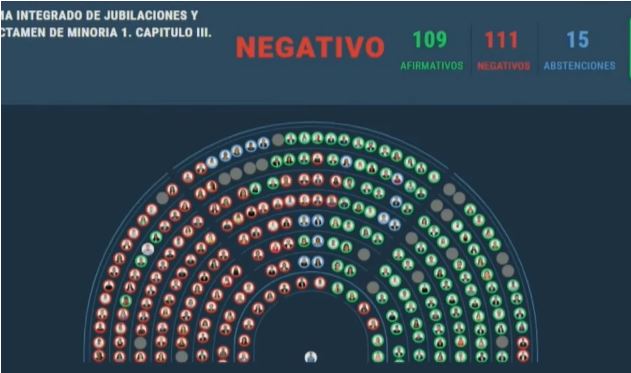 La votación culminó con 109 afirmativos, 111 negativos y 15 abstenciones, por lo que el artículo se cayó con el impulso de Unión por la Patria y Hacemos Coalición Federal.