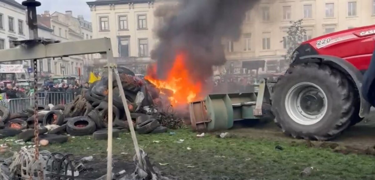 Varios agricultores han atacado el edificio situado en el centro y frente al Parlamento Europeo, destrozando sus ventanas. Simultáneamente, se están produciendo varios incendios en la Plaza de Luxemburgo. Un incendio masivo arde en el centro de la plaza. Varios agricultores también están insultando a los periodistas presentes e incluso disparando a los camarógrafos.