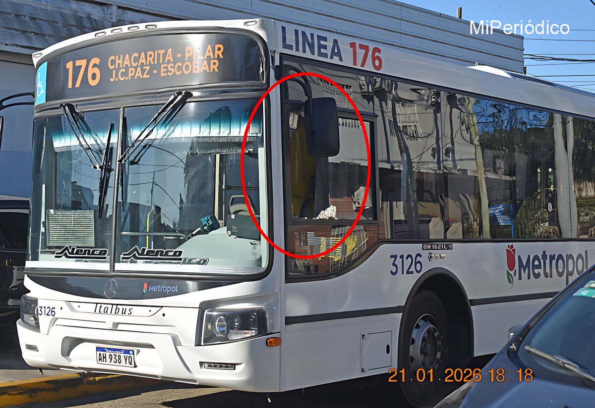 Buenos Aires, 21 de enero de 2026 (Mi Periódico).- Varios menores de entre 12 y 15 años atacaron con piedras un colectivo de la línea 176. El hecho ocurrió esta tarde a la altura del barrio Villa Puerta 8 de Tres de Febrero. Los jóvenes rompieron completamente el parabrisas del conductor y luego huyeron.