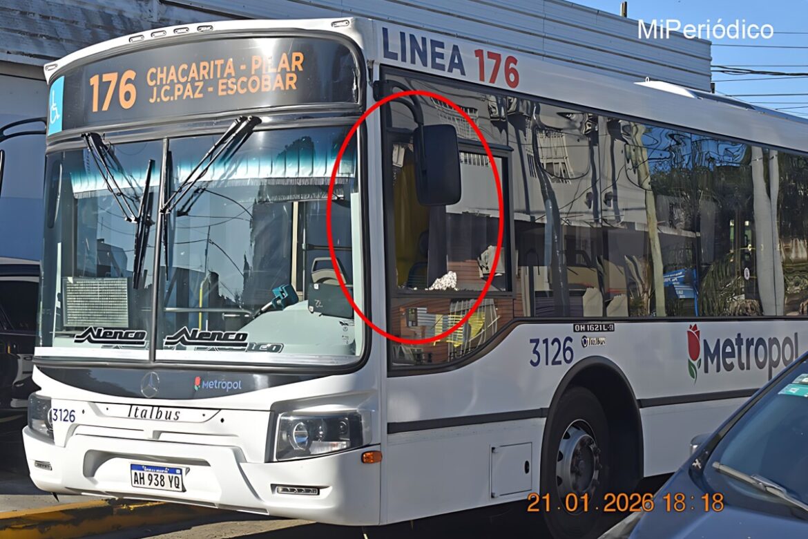Buenos Aires, 21 de enero de 2026 (Mi Periódico).- Varios menores de entre 12 y 15 años atacaron con piedras un colectivo de la línea 176. El hecho ocurrió esta tarde a la altura del barrio Villa Puerta 8 de Tres de Febrero. Los jóvenes rompieron completamente el parabrisas del conductor y luego huyeron.