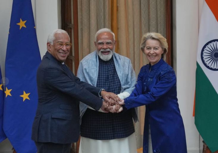 En una conferencia de prensa conjunta en Nueva Delhi con la presidenta de la Comisión Europea, Ursula von der Leyen, y el presidente del Consejo Europeo, António Costa , el líder indio dijo que la asociación con la UE “fortalecerá la estabilidad en el sistema internacional” en un momento de “agitación en el orden global”.