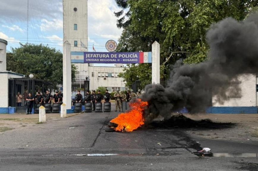 ROSARIO, SANTA FE, 11 de diciembre de 2026.- La protesta policial Rosario iniciada este lunes por la noche frente a la Jefatura de la Policía, ubicada en Ovidio Lagos al 5200, continúa este miércoles por la mañana y la tensión sigue creciendo. Vecinos y transeúntes observan la situación con preocupación. Tras más de 24 horas de reclamo, persiste el sirenazo y se mantienen patrulleros estacionados frente a la sede.