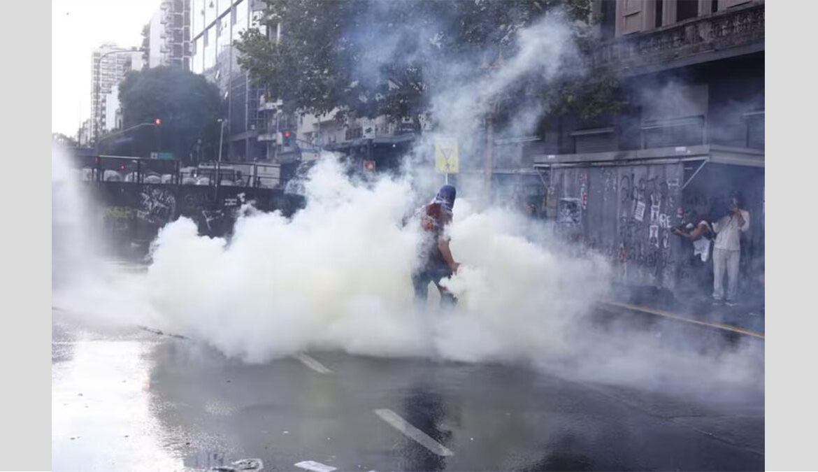 BUENOS AIRES, 19 febrero de 2026.- La tensión en la Plaza de los Dos Congresos alcanzó su punto máximo este jueves, con varios manifestantes detenidos en el Congreso en medio de incidentes violentos con las fuerzas de seguridad. Mientras el debate por la reforma laboral se iniciaba en el recinto a las 15:25. Pasadas las 18:00, el conflicto en las calles se desató cuando columnas de infantería avanzaron sobre los manifestantes que derribaron el vallado perimetral. Por lo tanto, el uso de gases lacrimógenos, balas de goma y camiones hidrantes convirtió la zona en un campo de batalla.