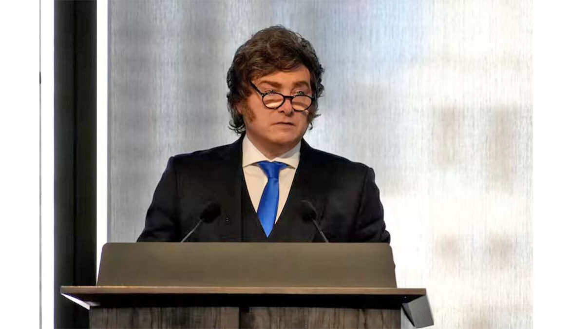 Javier Milei durante su discurso en Argentina Week 2026 en Nueva York, donde anticipa lluvia de dólares para el país.