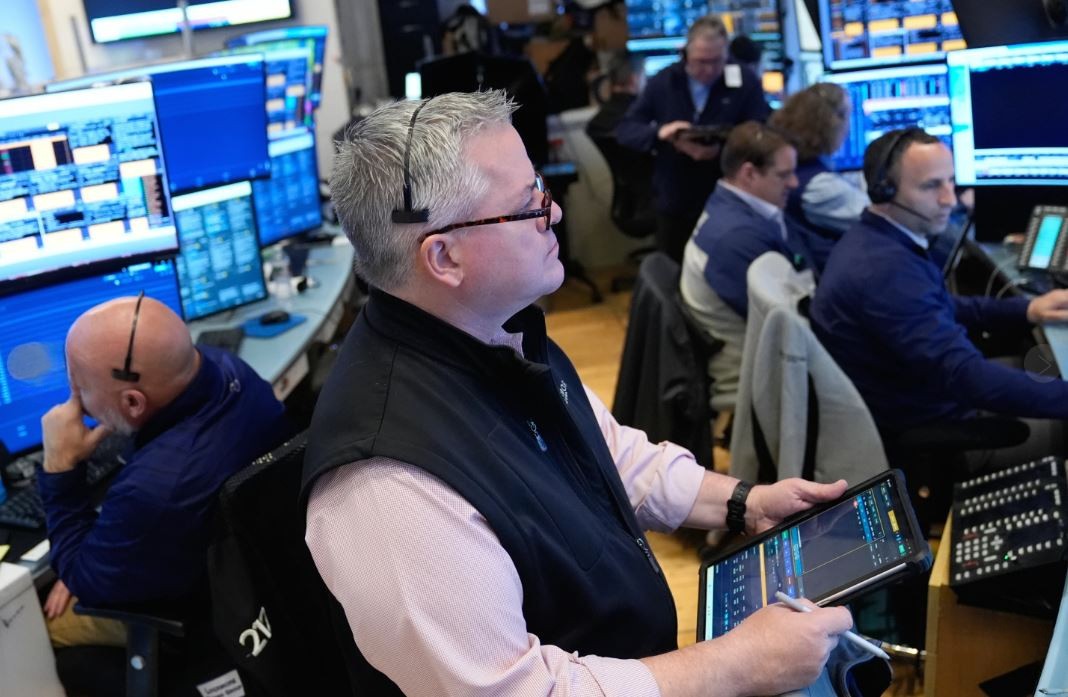Personas trabajando en la Bolsa de Valores de Nueva York, el lunes 13 de abril de 2026. (Foto AP/Seth Wenig)